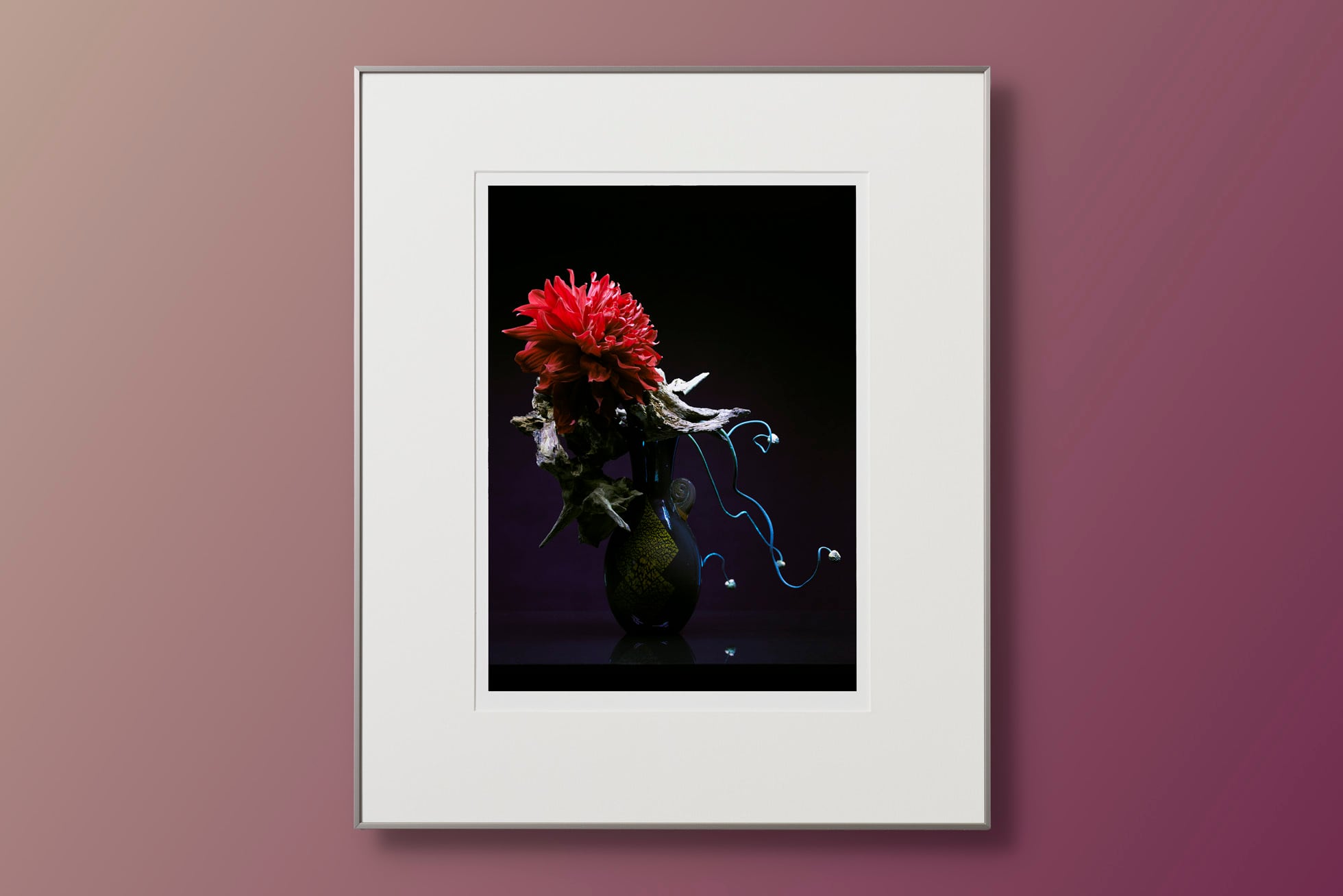 鳥や虫たちの中には、人間には見えない光、紫外線を見ることができる生き物もいます。そのため、通常私たちが見ている世界とは少し違うと言います。一体、花などの植物はどのように見えているのでしょうか? 本シリーズは、紫外線ライトのような特殊な光源を使用し、人間の眼では捉えられない光の元で浮かび上がる「いけばな」の新たな姿を描き出しました。