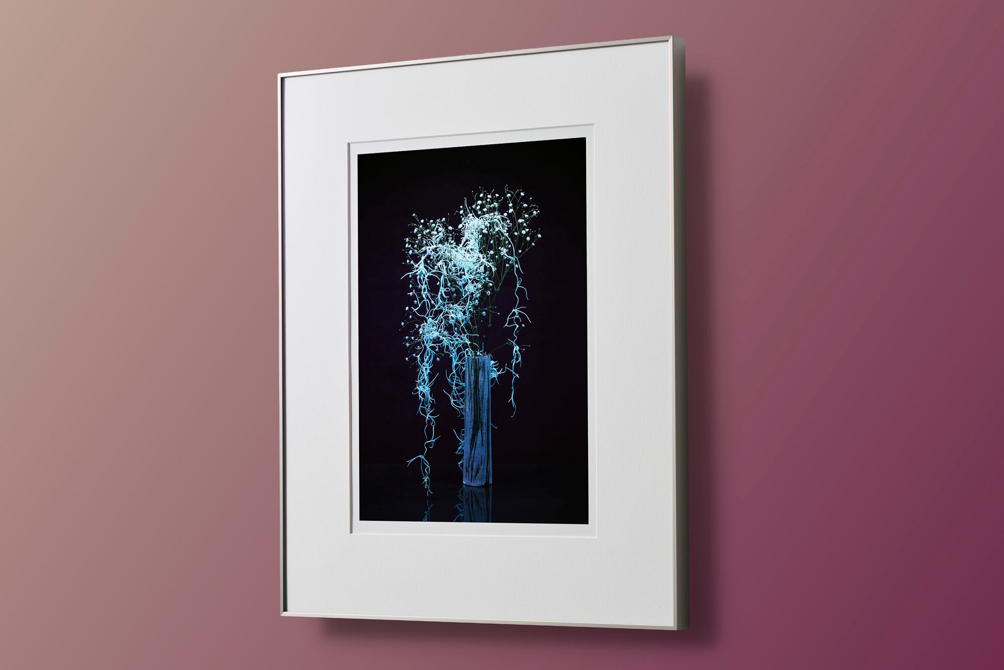 鳥や虫たちの中には、人間には見えない光、紫外線を見ることができる生き物もいます。そのため、通常私たちが見ている世界とは少し違うと言います。一体、花などの植物はどのように見えているのでしょうか? 本シリーズは、紫外線ライトのような特殊な光源を使用し、人間の眼では捉えられない光の元で浮かび上がる「いけばな」の新たな姿を描き出しました。